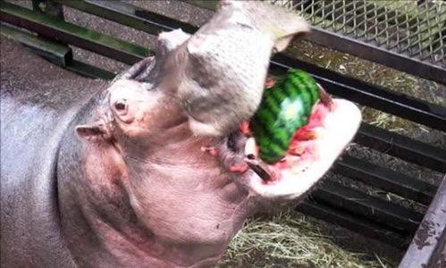 河马吃瓜,竟然砸到牙?